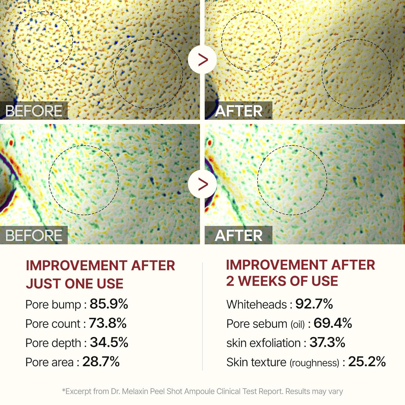 Traditional scrubs use abrasive particles that can create micro-tears in your skin. Dr.Melaxin Peel Shot works differently: